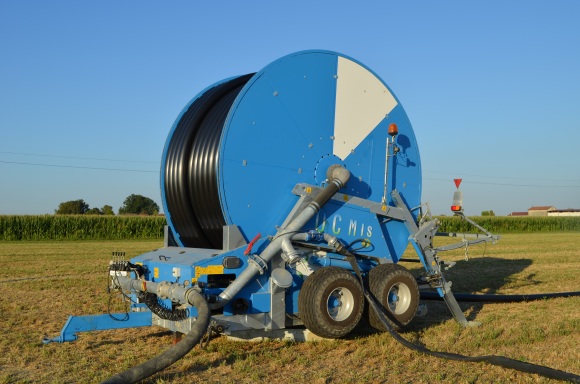 - Galvanized raingun trolley mounted on variable track wheels